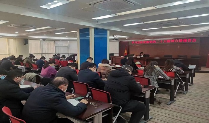 為深入學習貫徹黨的二十大精神,切實把集團黨員干部職工的思想和行動統(tǒng)一到會議精神上來,按照省國資委及集團黨委的工作安排,12月30日下午,國富投資集團在18樓大會議室組織召開黨的二十大精神宣講報告會,集團公司黨委書記、董事長王廣田結(jié)合自己的工作實際和學習體會宣講了黨的二十大精神,集團公司黨委委員、各支部書記及駐石工作的干部職工近60人參加了學習。