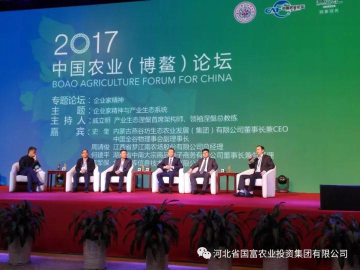 12月3日,由國際食物政策研究所、中國基本建設(shè)優(yōu)化研究會(huì)、中國生產(chǎn)力促進(jìn)中心協(xié)會(huì)、中國畜牧業(yè)協(xié)會(huì)、中國循環(huán)經(jīng)濟(jì)協(xié)會(huì)、中國農(nóng)產(chǎn)品流通經(jīng)紀(jì)人協(xié)會(huì)以及北京紫荊創(chuàng)新農(nóng)業(yè)研究院聯(lián)合主辦,熹品匯作為總冠名方,中國網(wǎng)庫集團(tuán)、海南博鰲品牌管理有限公司承辦的“2017中國農(nóng)業(yè)(博鰲)論壇”在海南博鰲亞洲論壇國際會(huì)議中心如期舉辦。河北省國富農(nóng)業(yè)投資集團(tuán)有限公司受邀參加。