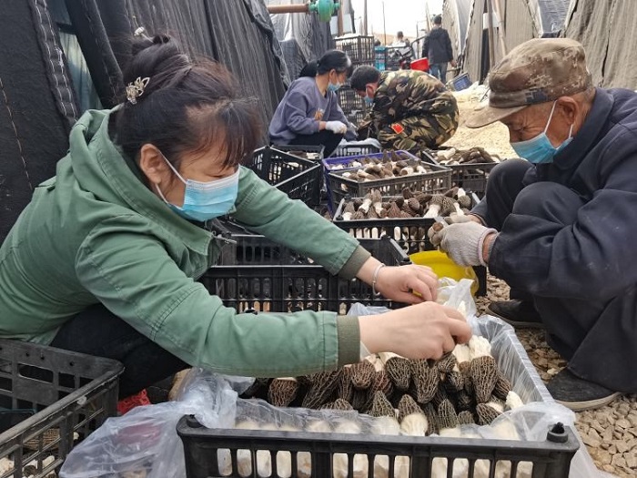 眼下正值羊肚菌豐產(chǎn)期,在北店頭鎮(zhèn)西同籠村的三十多個(gè)溫室大棚里,羊肚菌長(zhǎng)勢(shì)喜人,村民們正在忙著收割、打包,一派忙碌景象。